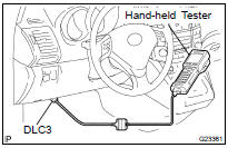 (b) Connect the hand-held tester to the DLC3, then turn the ignition switch to the ON position.