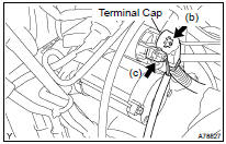(b) Open the terminal cap, remove the nut and disconnect the starter wire.