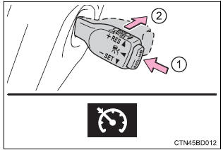 When in constant speed control mode, to return to vehicle-to-vehicle distance control mode, push the lever forward again and hold for approximately 1 second.